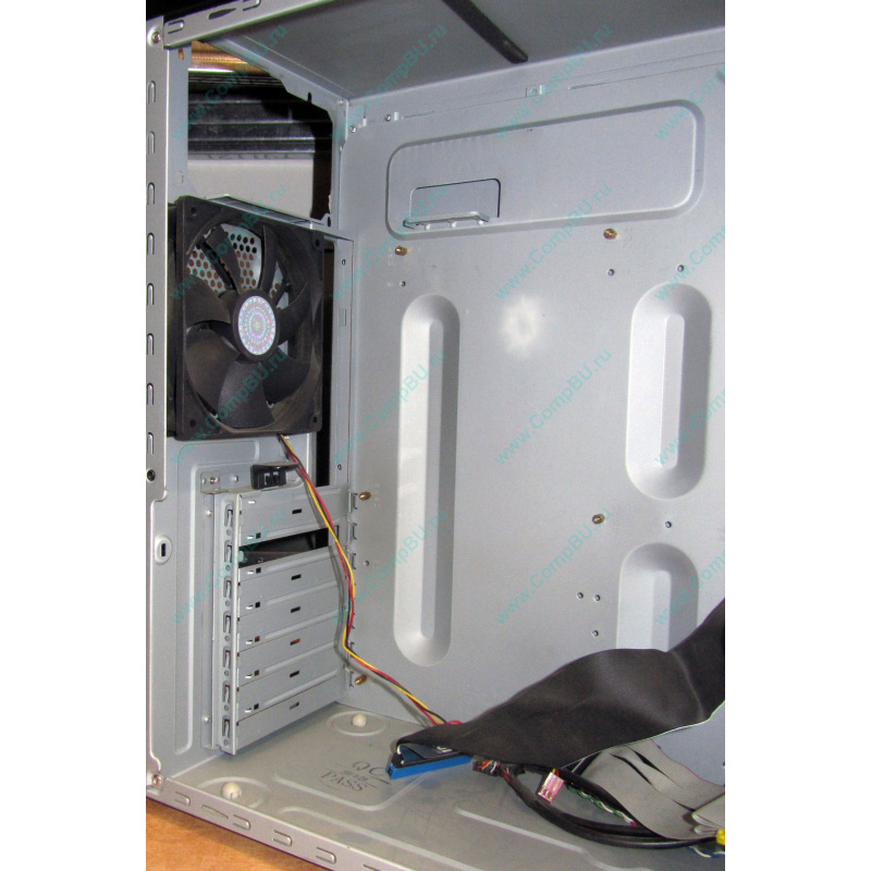 В корпус установлены DWDRW DL IDE, флоппи-дисковод, кардридер и задний кулер.